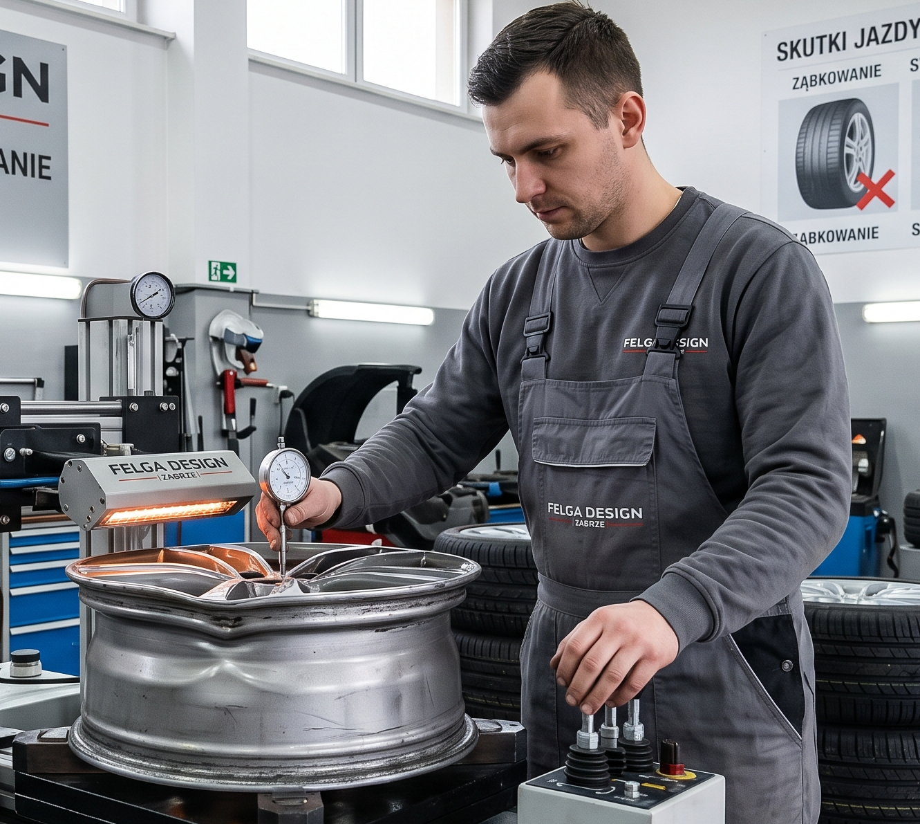Nasz warsztat w Zabrzu wyposażony jest w precyzyjne, hydrauliczne maszyny do prostowania felg aluminiowych. Z najwyższą dokładnością diagnozujemy punkt skrzywienia przy pomocy czujników zegarowych, a następnie – z zachowaniem odpowiedniej temperatury – przywracamy fabryczną geometrię obręczy. Unikamy w ten sposób osłabienia struktury materiału. Gwarantujemy rzetelność i bezpieczeństwo każdej naprawy. Odzyskaj pełną kontrolę nad autem z felgadesign.pl.