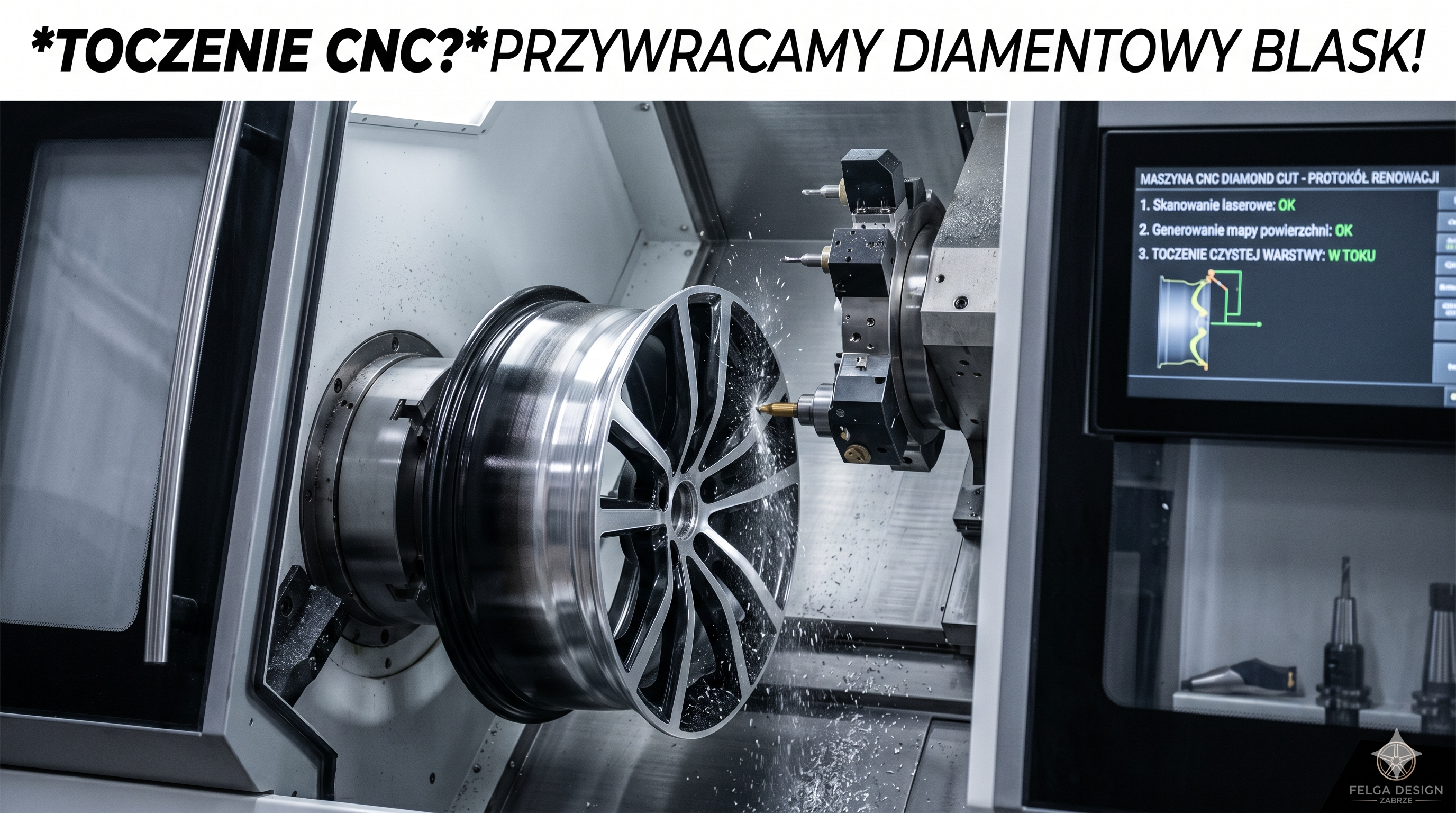 rzywróć fabryczny blask swoim felgom! Profesjonalne toczenie CNC (Diamond Cut) w Zabrzu. Precyzja, nowoczesny sprzęt i niesamowity efekt wizualny. Sprawdź!
